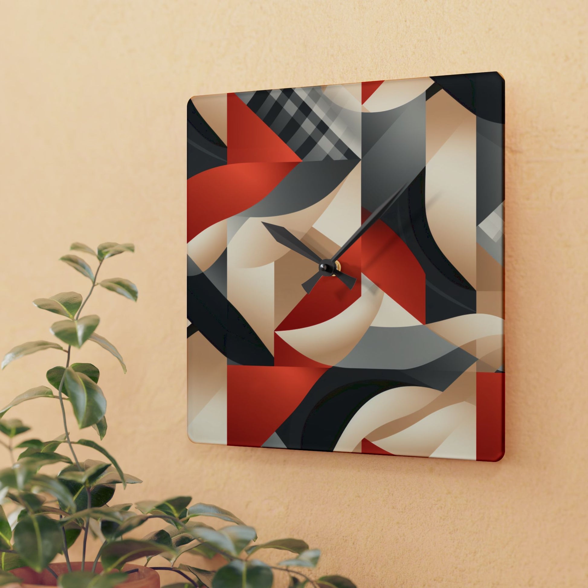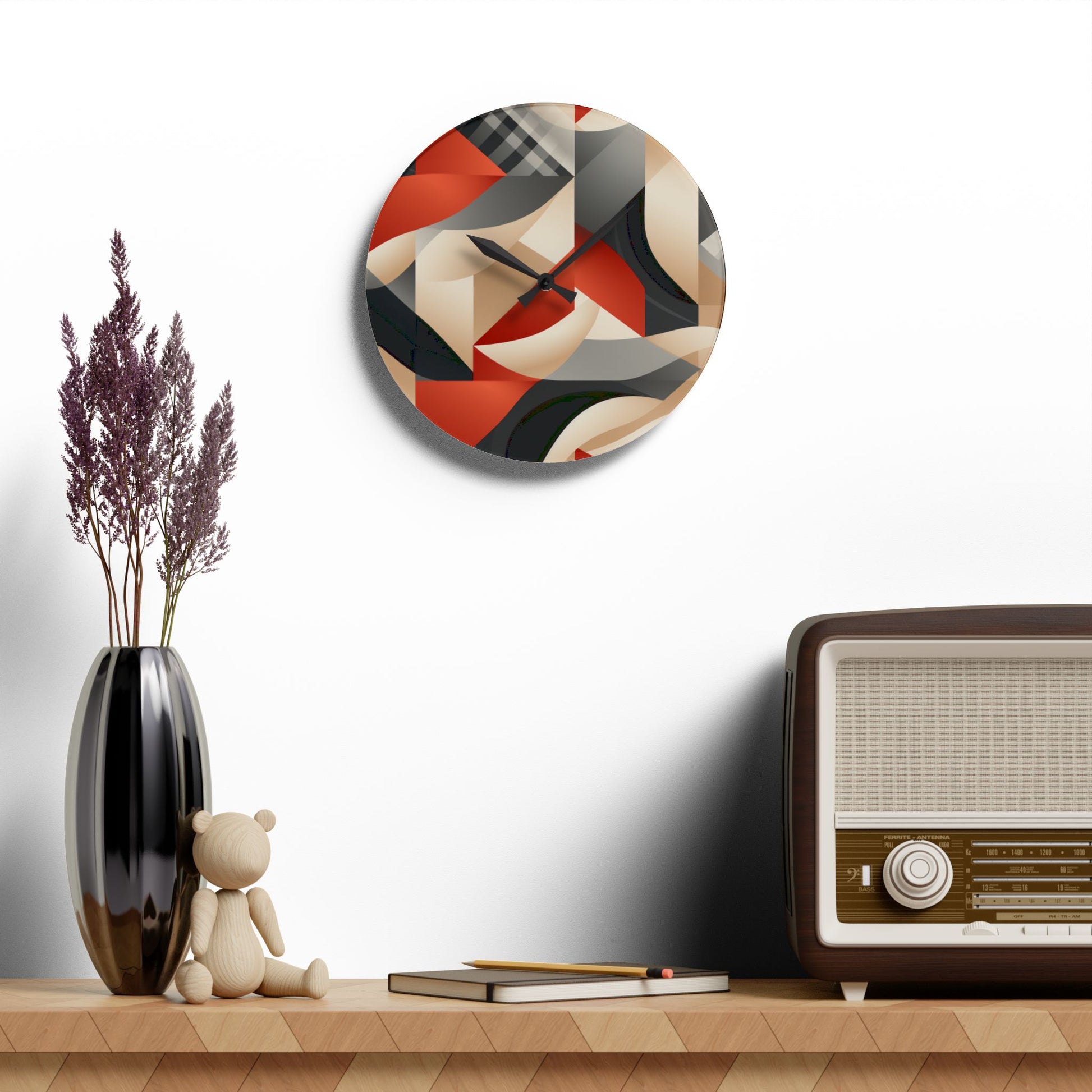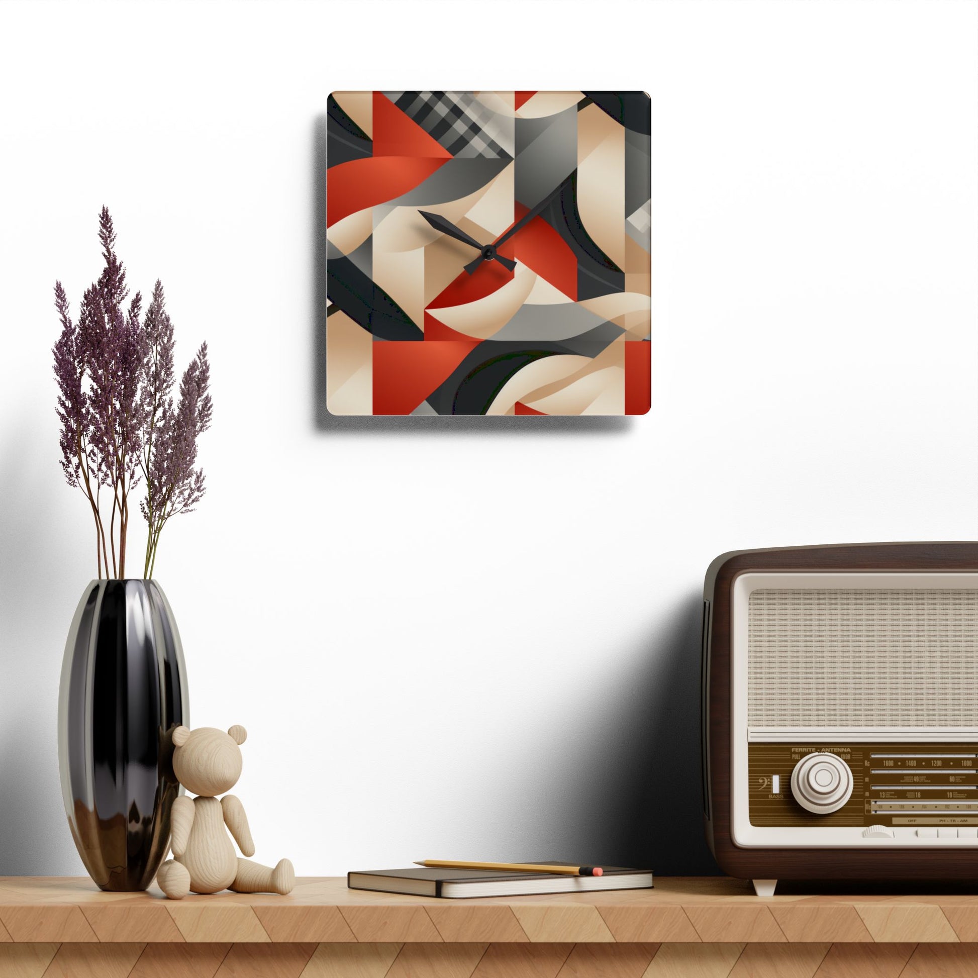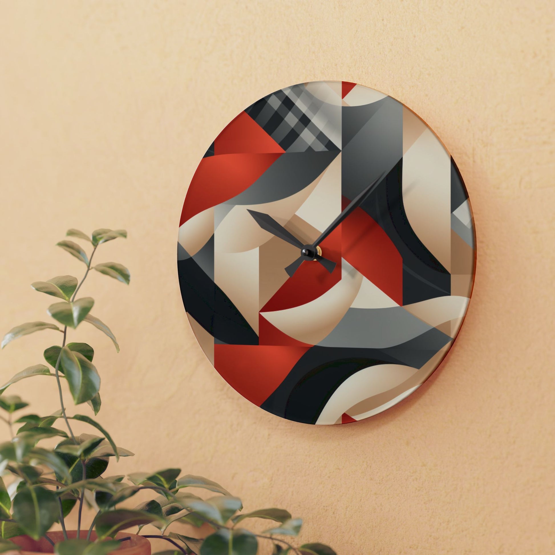 These clocks come in two shapes (round and square) and two sizes. Each clock has a keyhole at the back for easy hanging on a wall. They're made from an acrylic material that looks like glass but is more durable and sturdy.