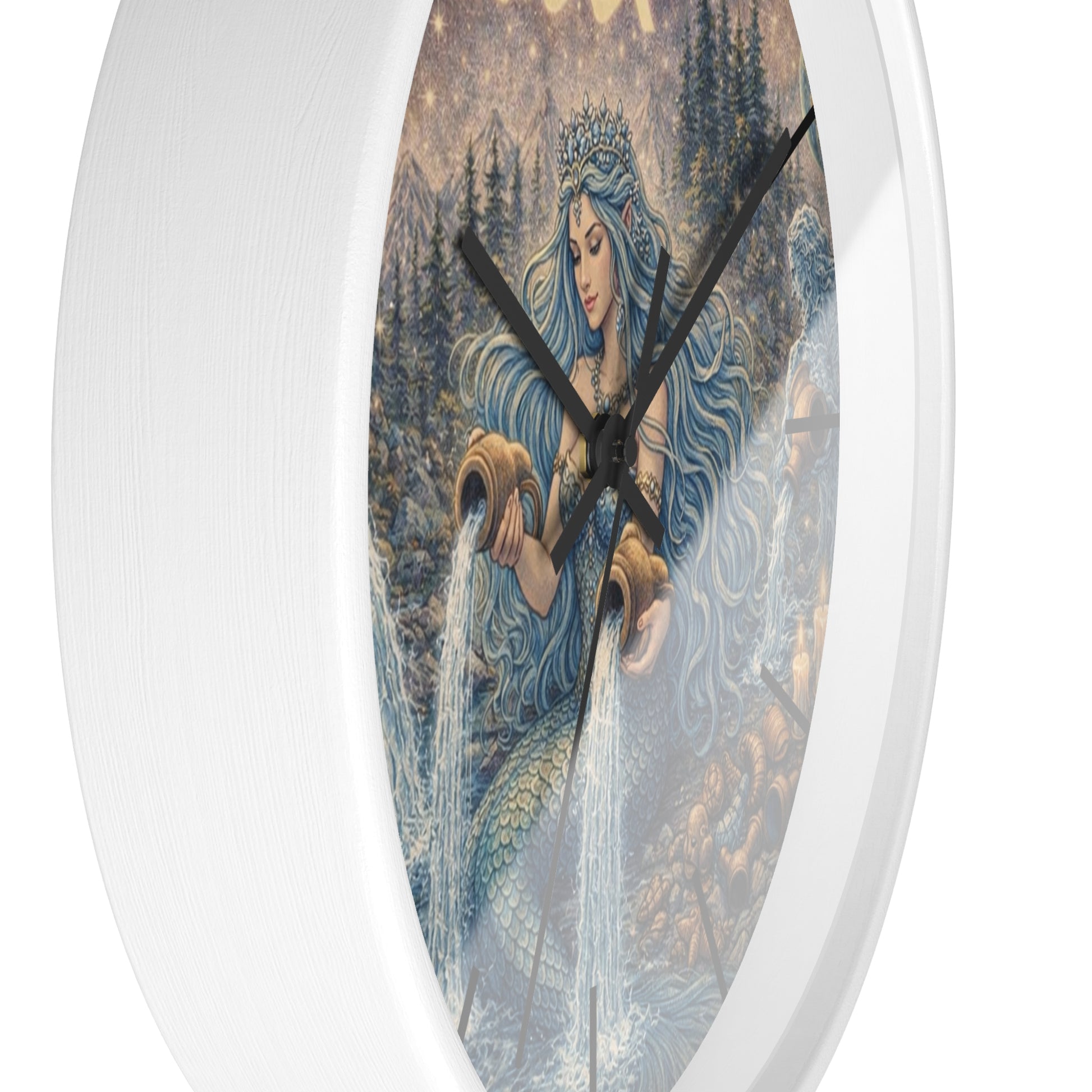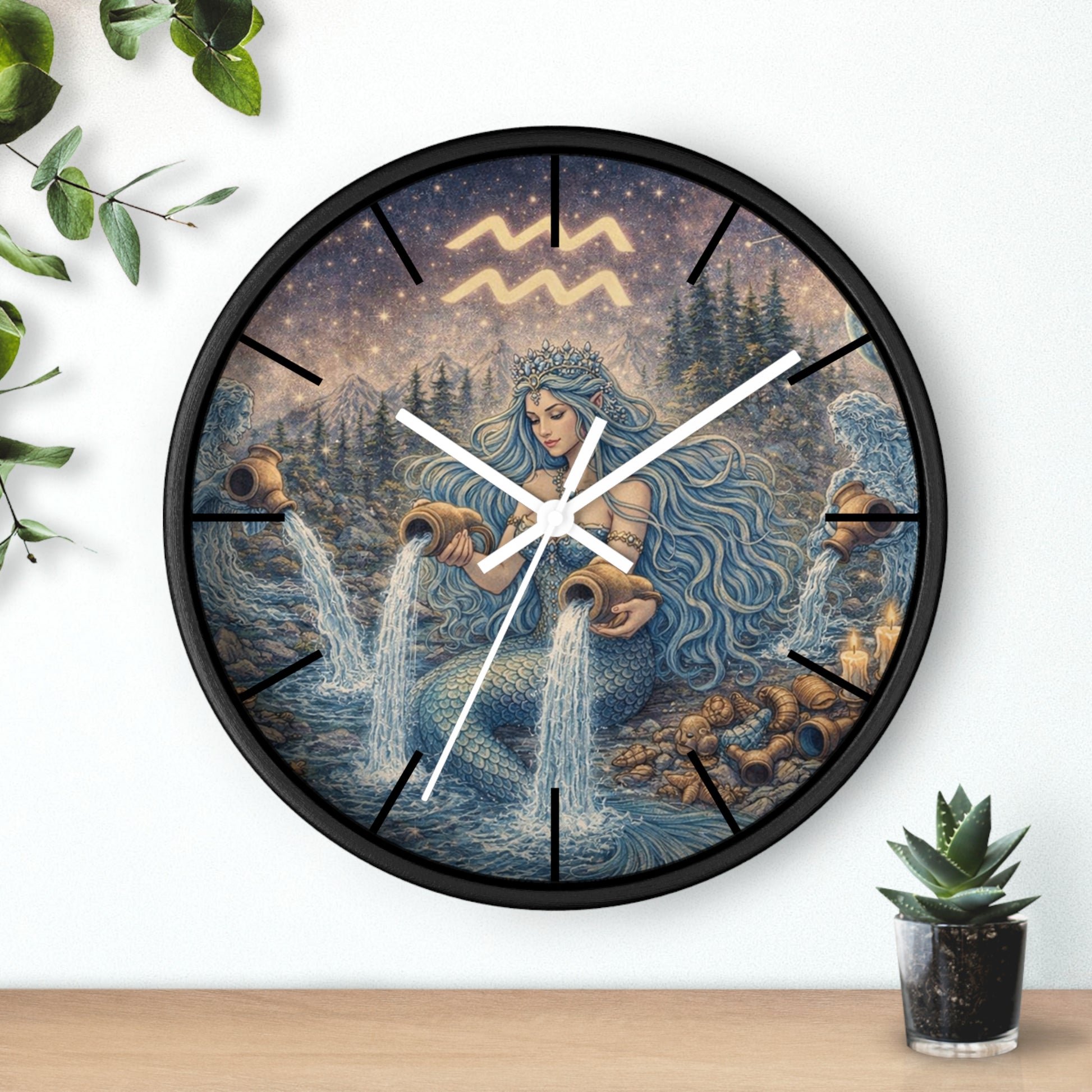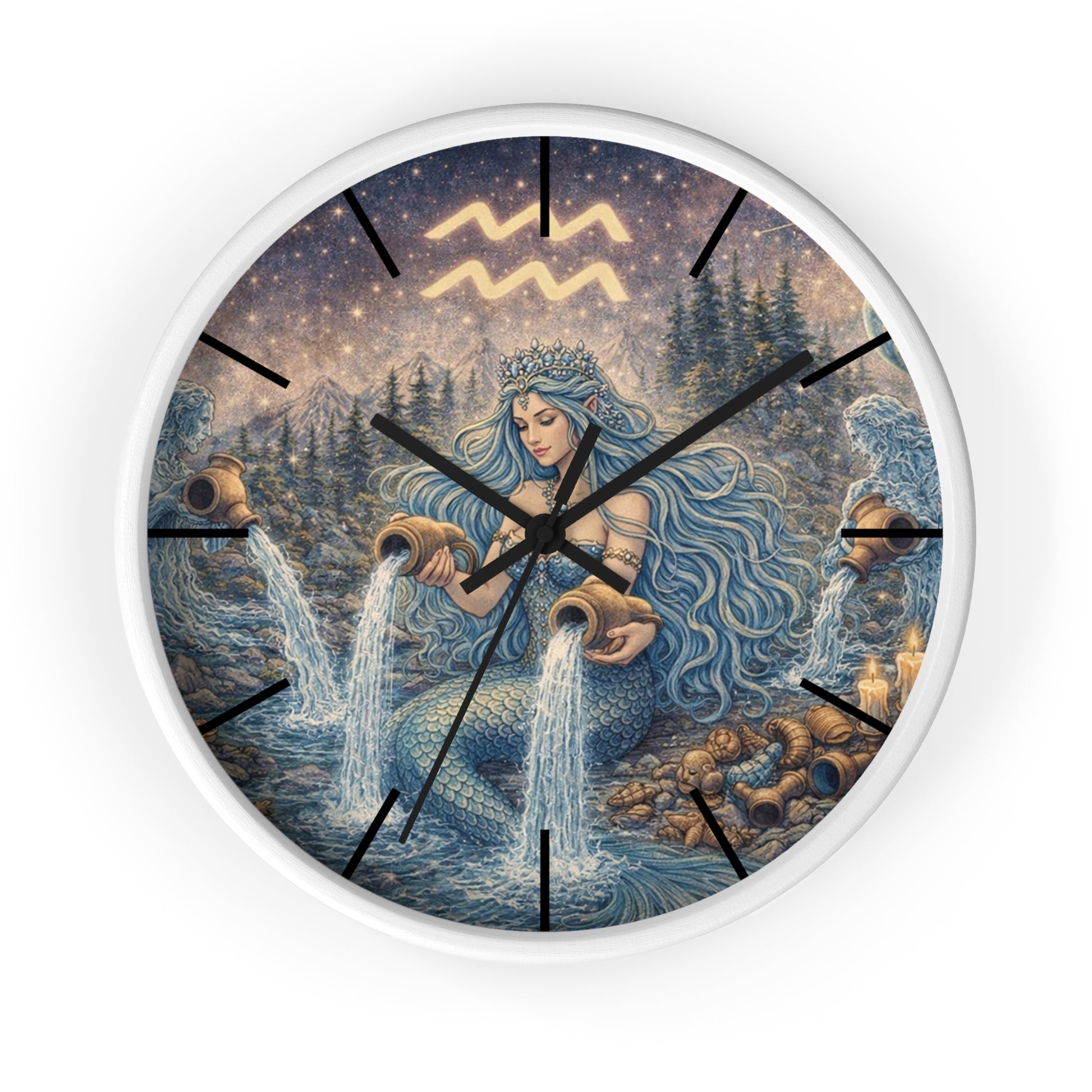 Aquarius Mermaid Wall Clock | Zodiac Water Bearer Celestial Art