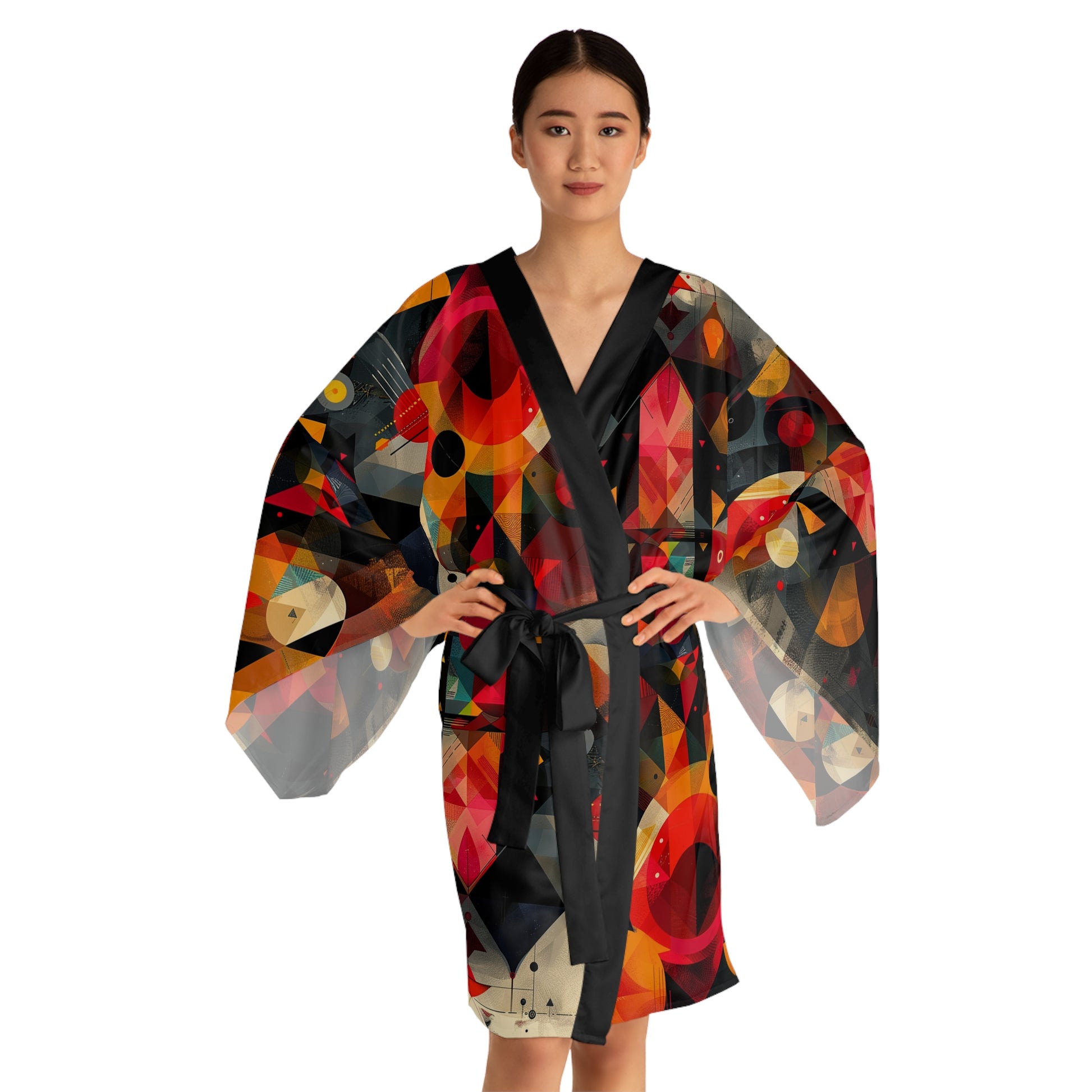Whether it’s lounging at home or making a stylish appearance, these kimono-style robes are as beautiful as they are cozy. With a figure-flattering shape, this chic mid-length robe features the signature flowing bell sleeves and a belt, making it an absolute delight for Japanese style enthusiasts. Each kimono is 100% made with Polyester for that smooth & silky feel.