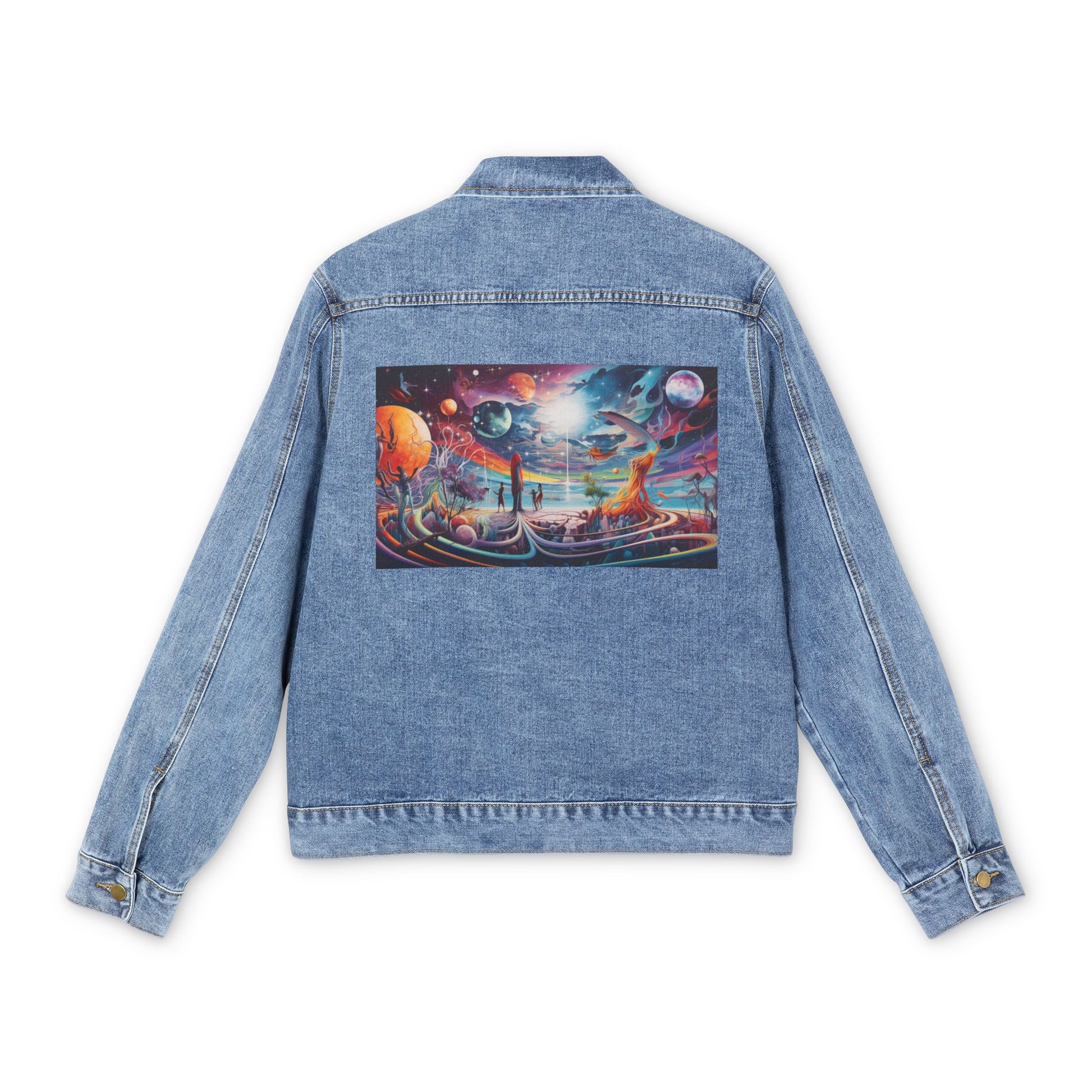 This classic denim jacket for men features a lapel collar and button-front closure for a timeless look. With convenient front slant pockets, it's as functional as it is fashionable. Sporting a medium denim wash, it pairs effortlessly with any outfit, adding a touch of rugged charm to your wardrobe.