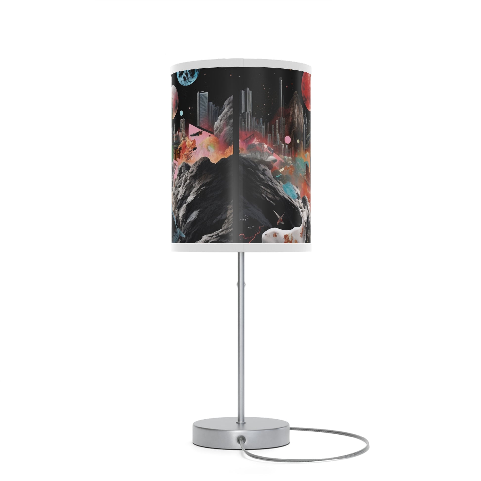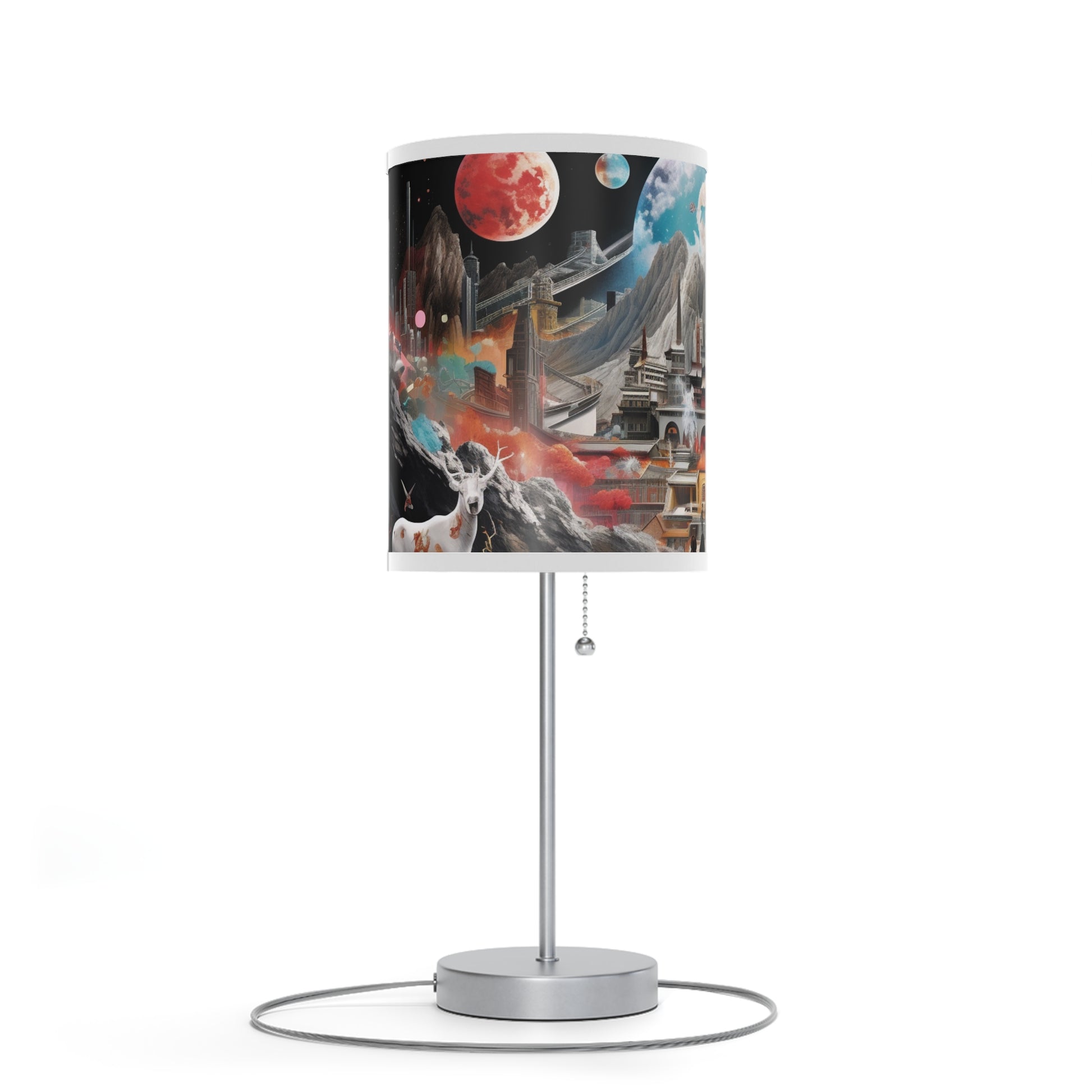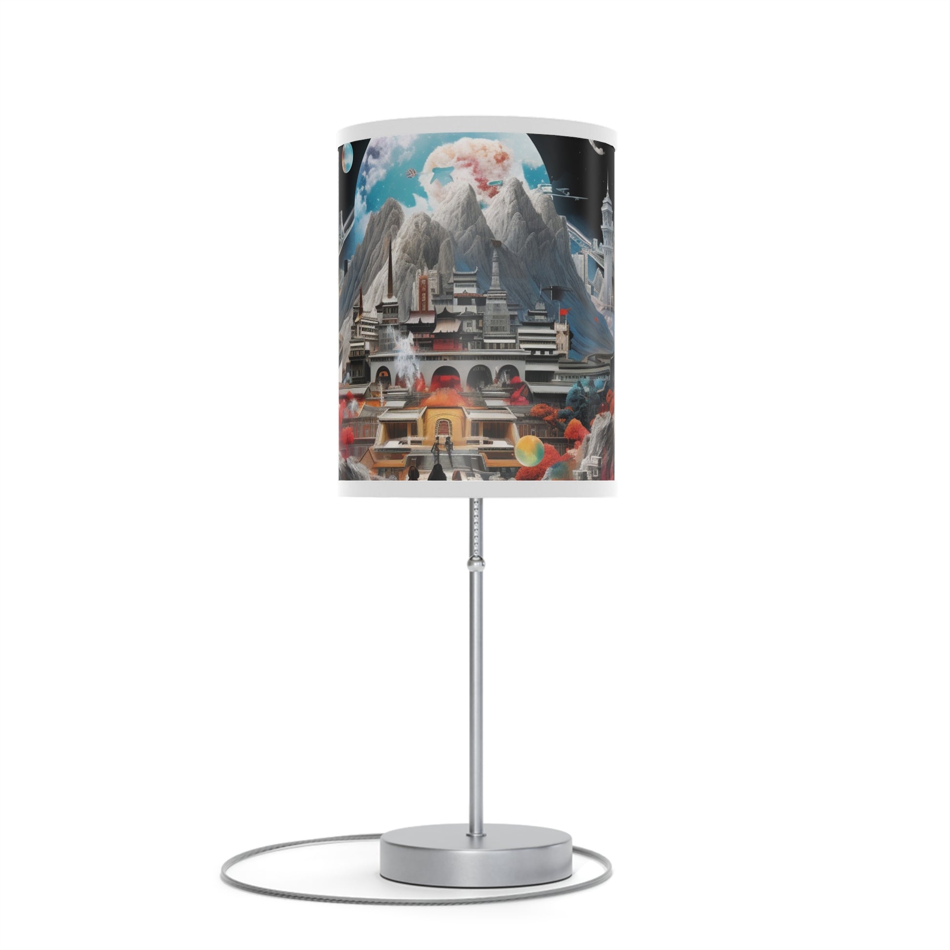This unique table lamp stand features a steel base that comes with a classy finish in silver or white. The shade of the lamp is available in 10 different trim colors and can accommodate all your designs in high-resolution printing.