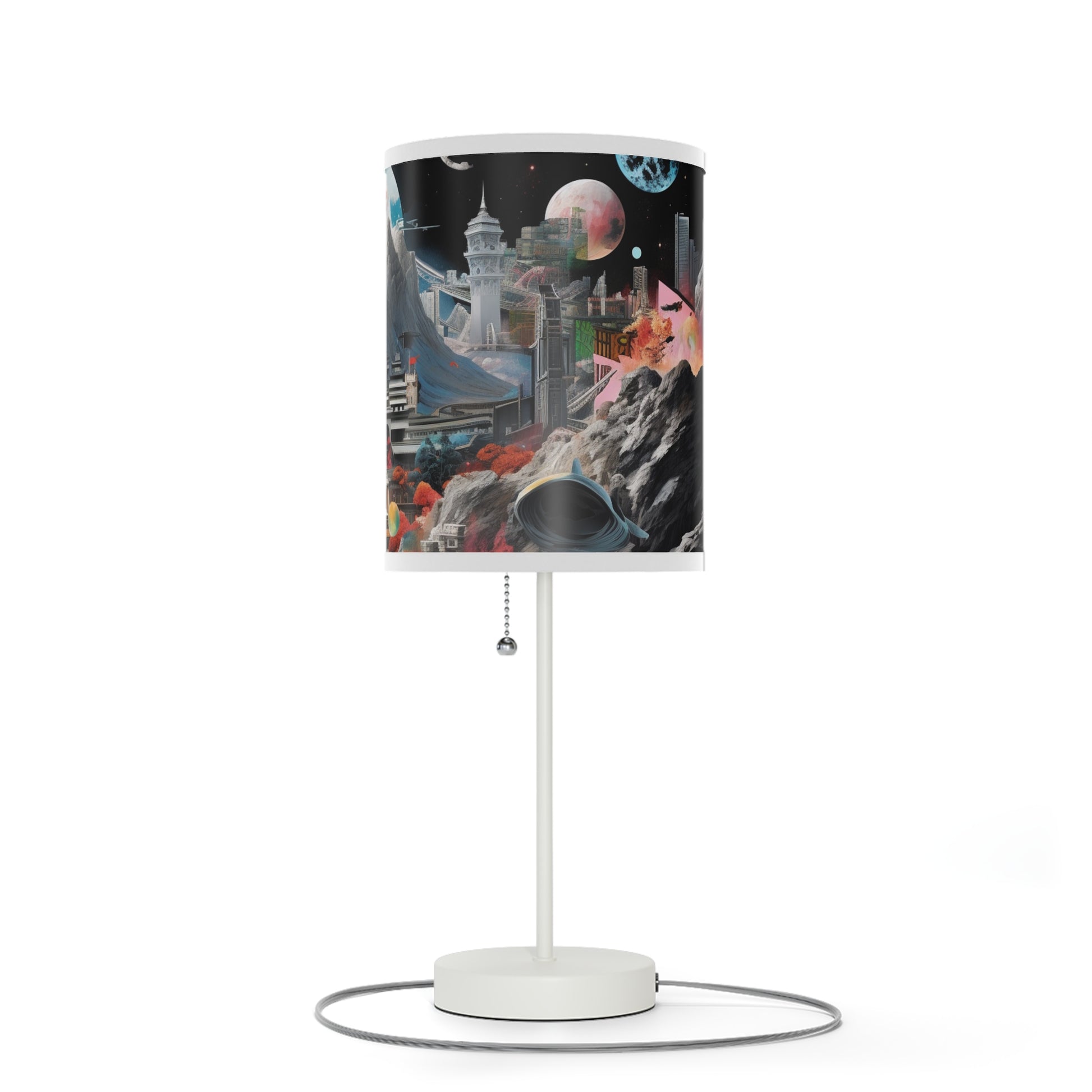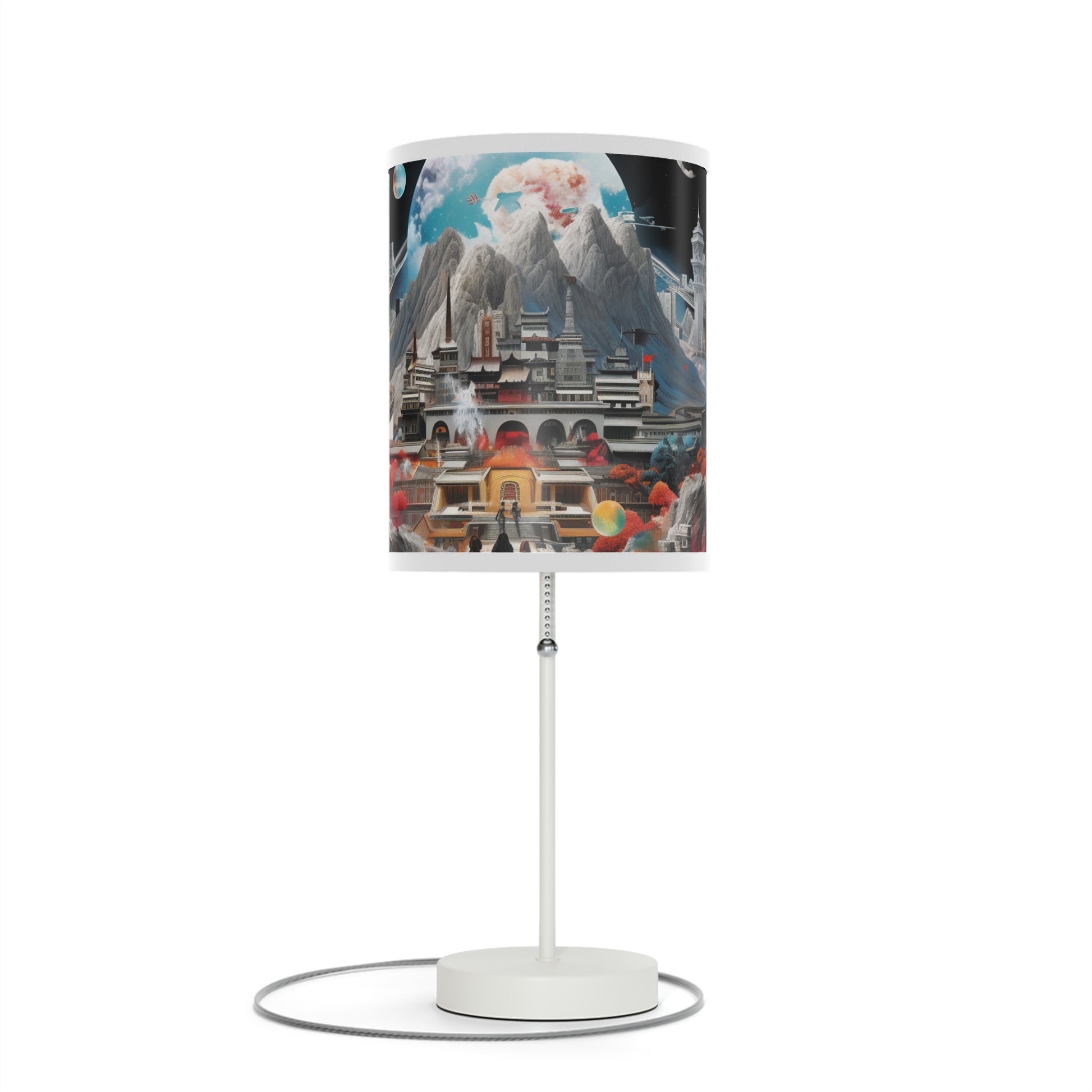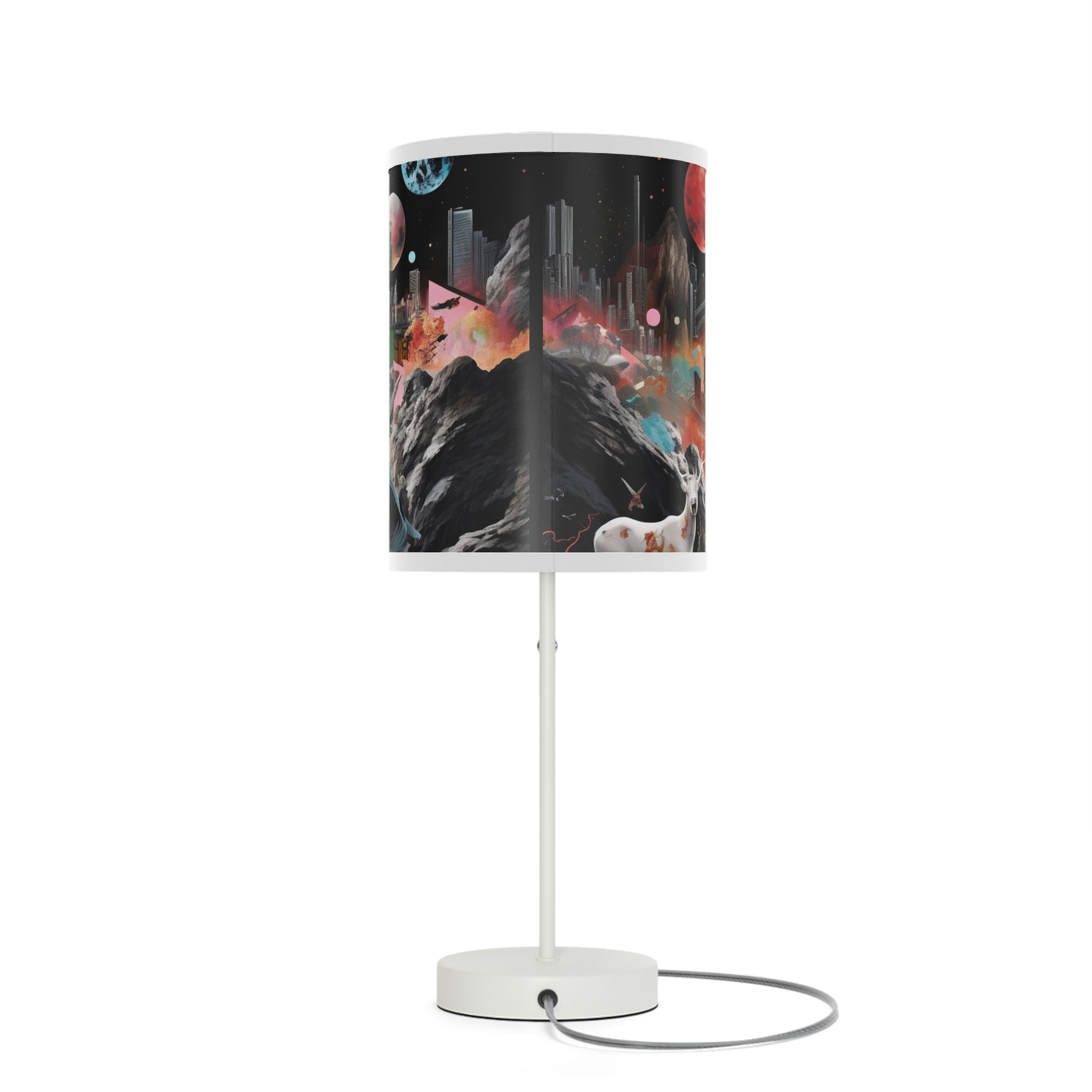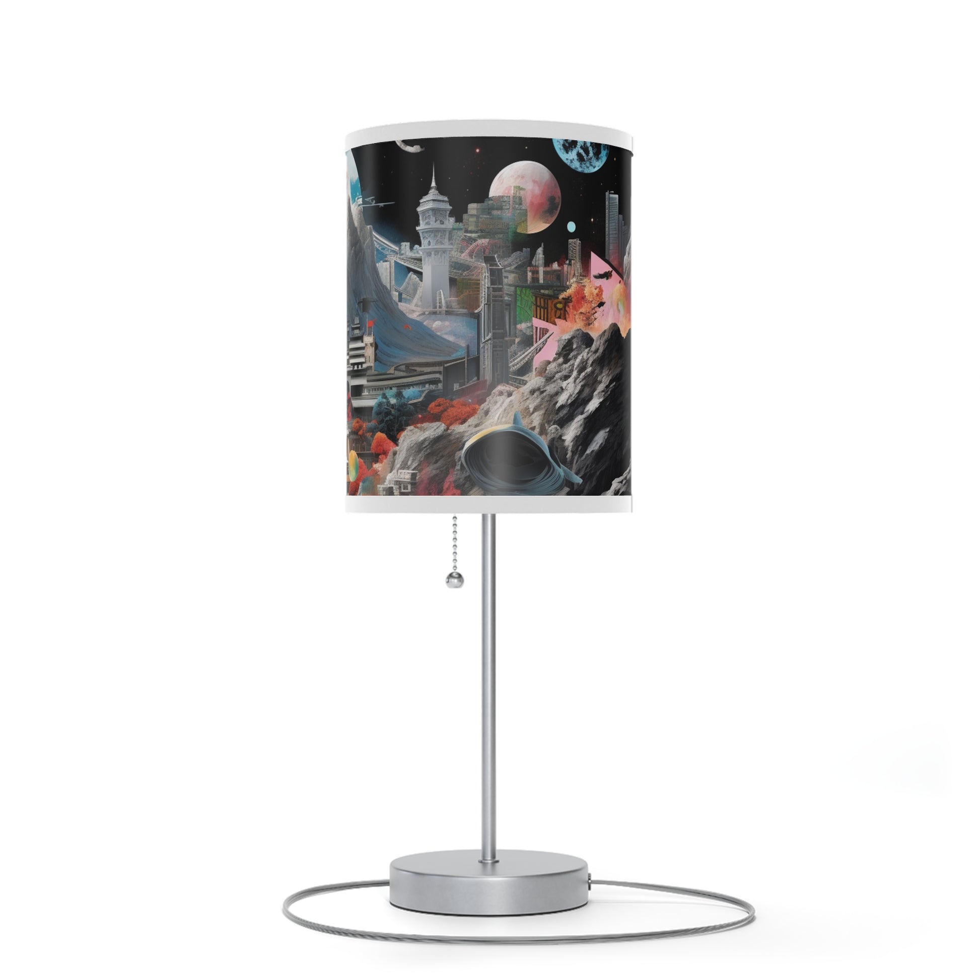 This unique table lamp stand features a steel base that comes with a classy finish in silver or white. The shade of the lamp is available in 10 different trim colors and can accommodate all your designs in high-resolution printing.