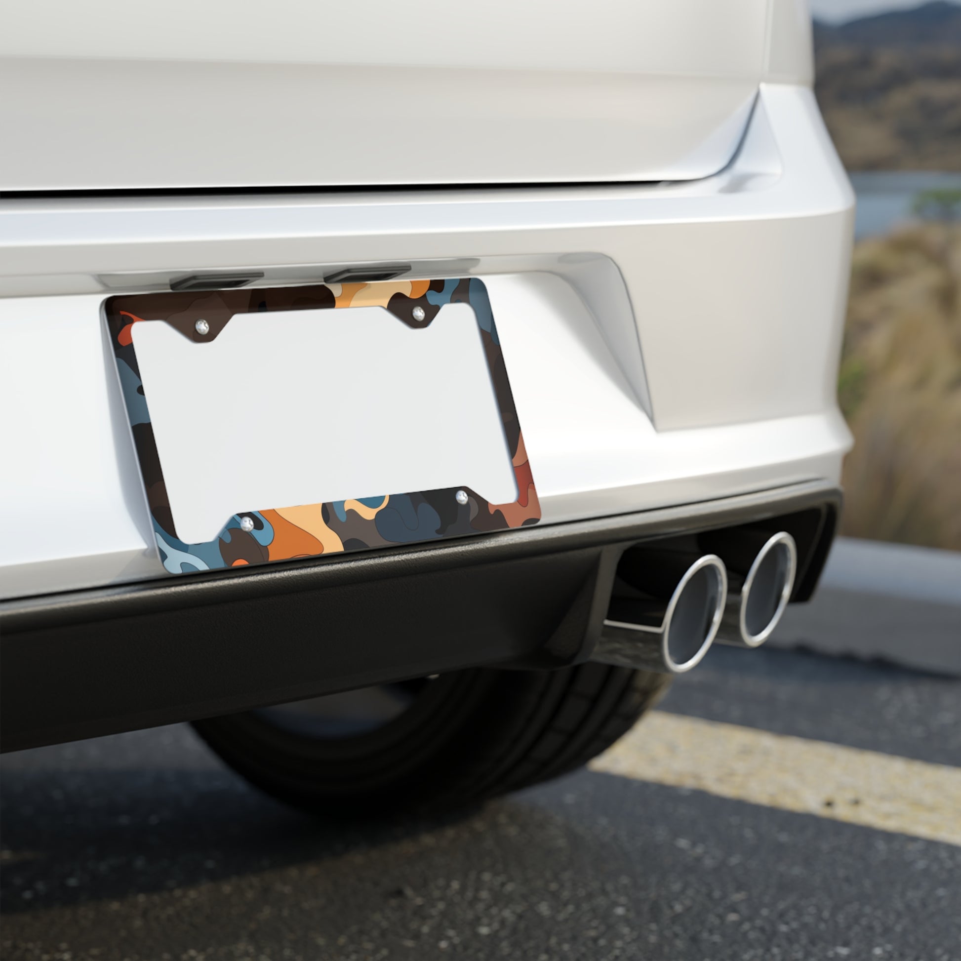 Let your audience express themselves with custom metal license plate frames. Made with a white aluminum base with a slick glossy finish and a silver backing, these frames have a unique shape for high information visibility and can be fully customized with your artwork in vivid detail. All plates come with pre-drilled holes for easy installation and are available in one size: 12.3" x 6.5" (31.1cm x 16.5cm)